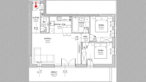 Amerikai konyhás nappali + 2 hálószoba + erkély.