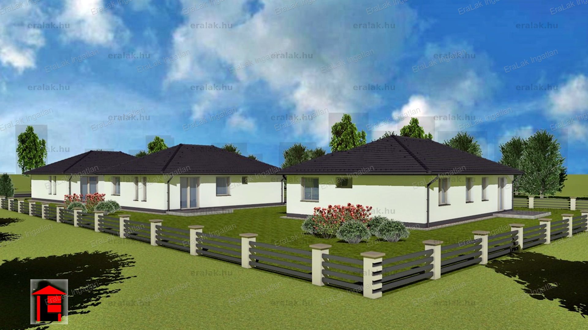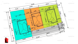 A nagyméretű telken 3 családi ház került elhelyezésre. Mindegyikhez saját - körbekeríthető - 400-nm-es  telekkel rendelkezik.