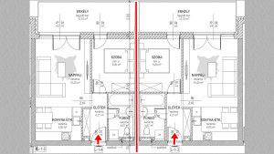 a lakáselválasztó falazat: LEIEERTHERM 25/30 AKU hanggátló téglából,