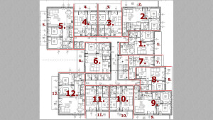 Az U alakú épületben 3 szinten lettek a lakások elhelyezve.