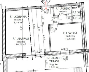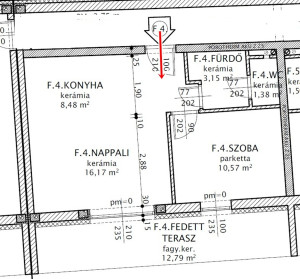 nappali 16,10 m2, konyha 8,48 m2 - szoba 10,57 m2 - fürdő 3,15 m2, wc 1,38 m2,
