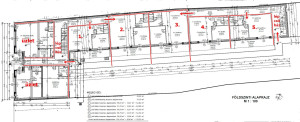 Az épület egy része alatt pince alá pincét építenek, ahol a gépészetet helyezik el. Valamint a tárolók kapnak helyet.
