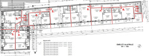 Az épület egy része alatt pince alá pincét építenek, ahol a gépészetet helyezik el. Valamint a tárolók kapnak helyet.